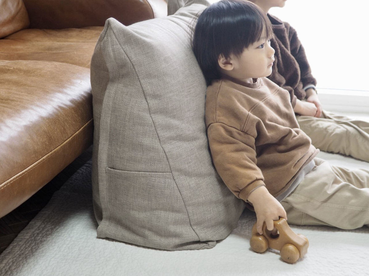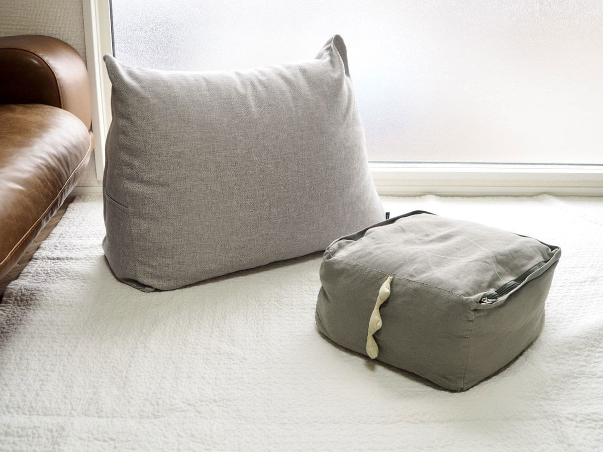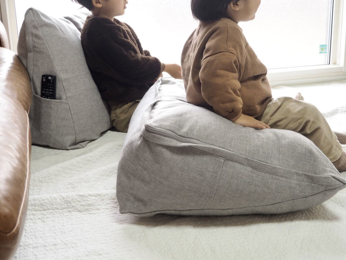 リビングに出しっぱなしにしておけて、くつろぐスペースを作れるなんて、まさに夢のようなアイテム。ほかにもベットの上や、床の上に直接置いて使うのも◎。