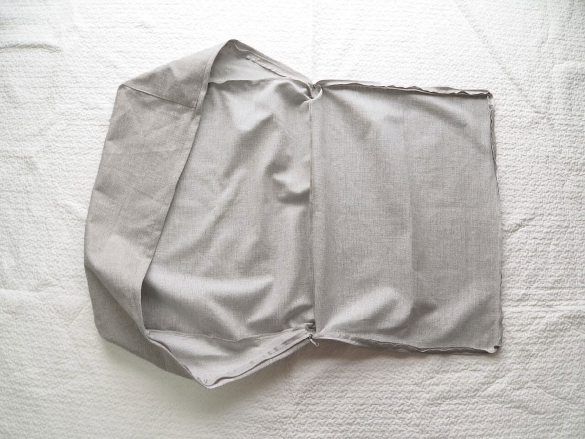 最後は布団を押さえながらファスナーを閉めれば、クッションのできあがり!