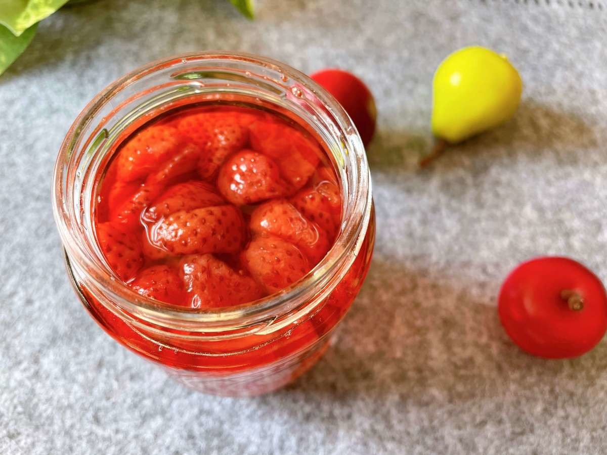 期待が高まる中フタを開けてみると、米酢に漬けられたたっぷりの国産いちごがお目見え。