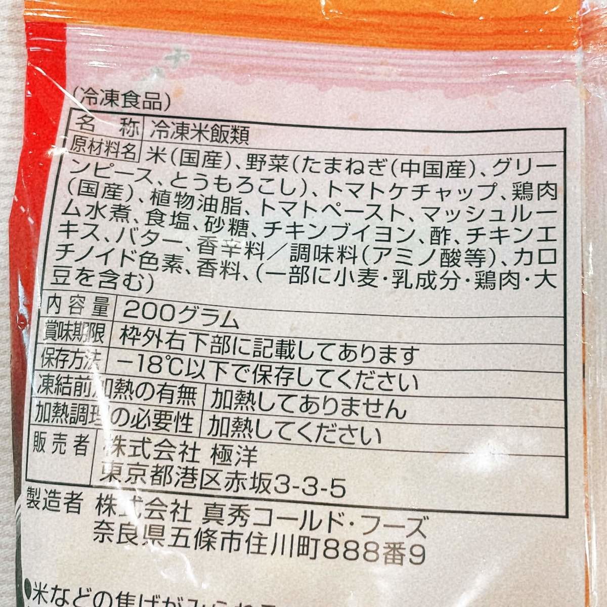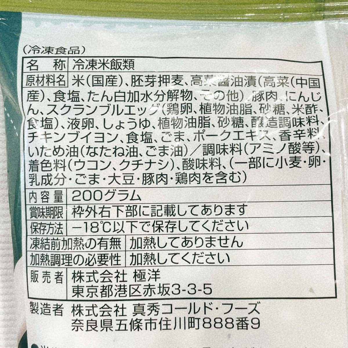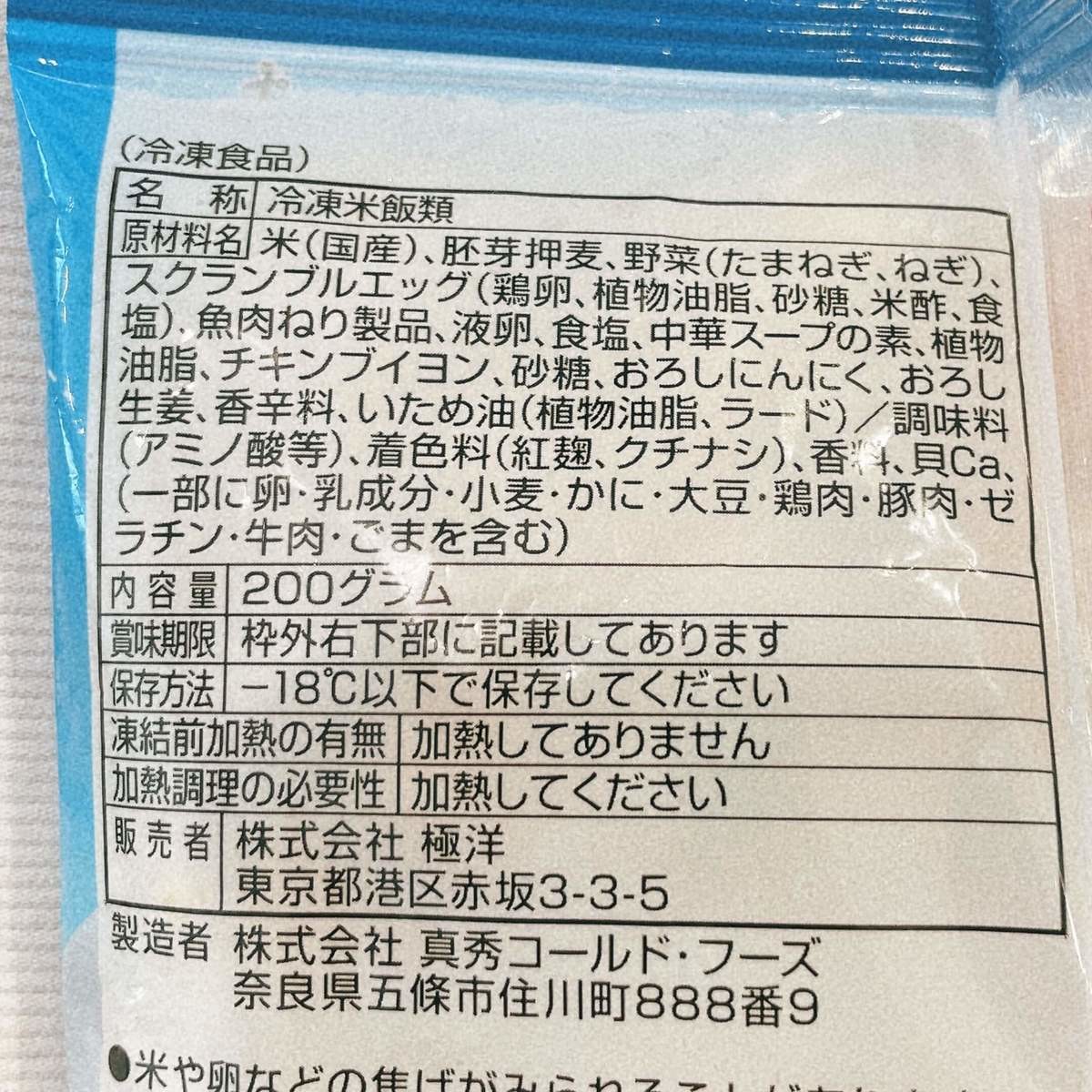 原材料を見てみると、米は国産のものを使用し、たまねぎ、ねぎ、スクランブルエッグなど炒飯には欠かせない食材がしっかり入っています。