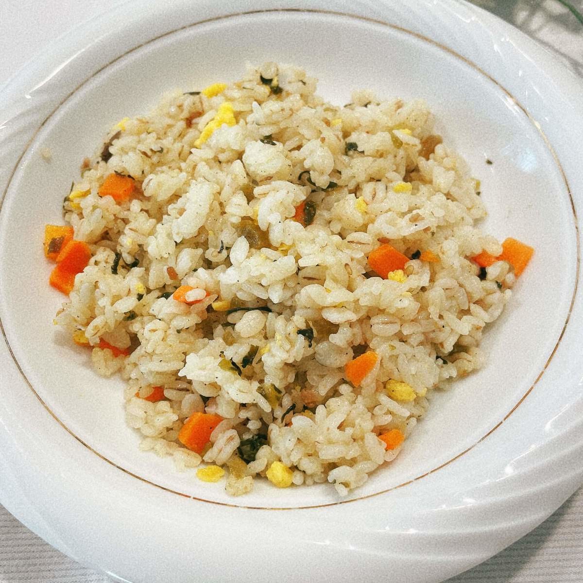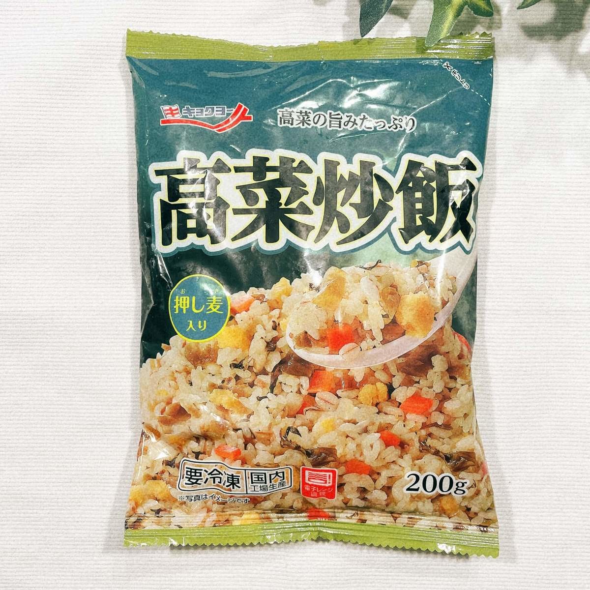 高菜炒飯も原材料を見てみると、国産の米に加えて、押し麦が使われていて、ヘルシー♪