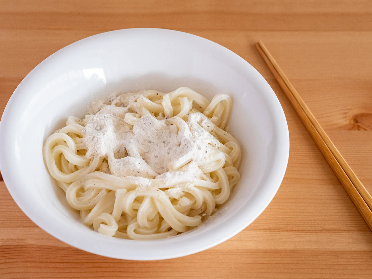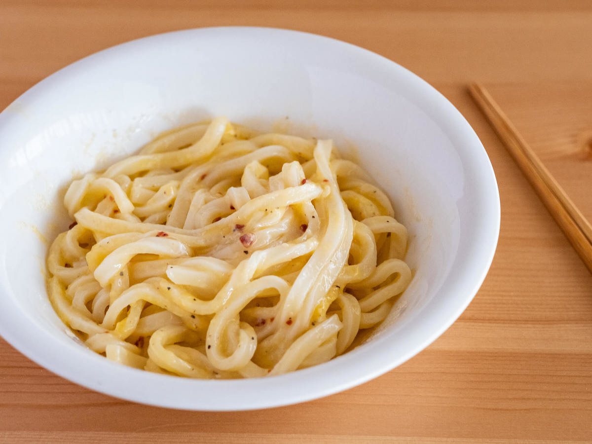 おうちに常備しておけば、パパッと手軽にちょっと洋風のおいしいうどんが食べられます。