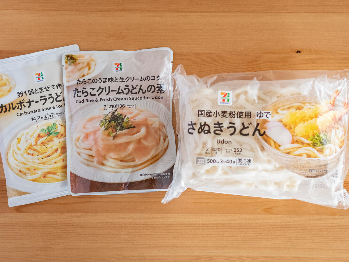 今回は、セブンプレミアムの「卵1個とまぜて作る カルボナーラうどんの素」と、「たらこのうま味と生クリームのコク たらこクリームうどんの素」をご紹介します。