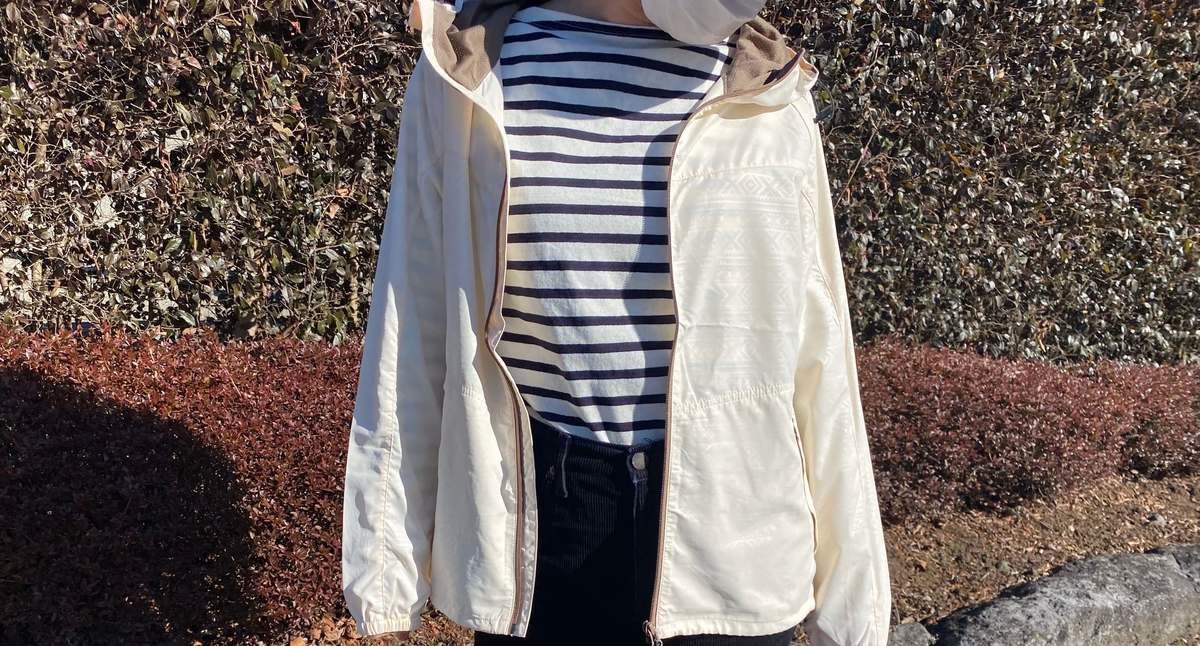 こちらは、ワークマンの「レディース高撥水シェルジャケット」。キャンプや犬の散歩などに使えるかなと思い、購入しました◎
