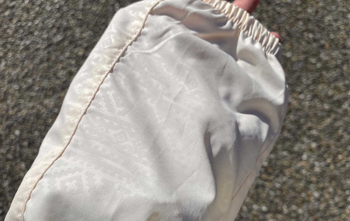 カラーは、エンボスレッド、エンボスホワイト、エンボスイエロー、エンボスパープルの4色展開。筆者が選択したエンボスホワイトは、数あるカラーの中でもかなりナチュラル。さまざまな系統のファッションに合わせやすい1品です◎