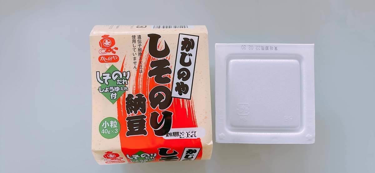 こちらは業務スーパーで買うことができる「かじのや しそのり納豆」、税込み68円です。40グラムのものが3パック入っているので1パックあたり約23円です。