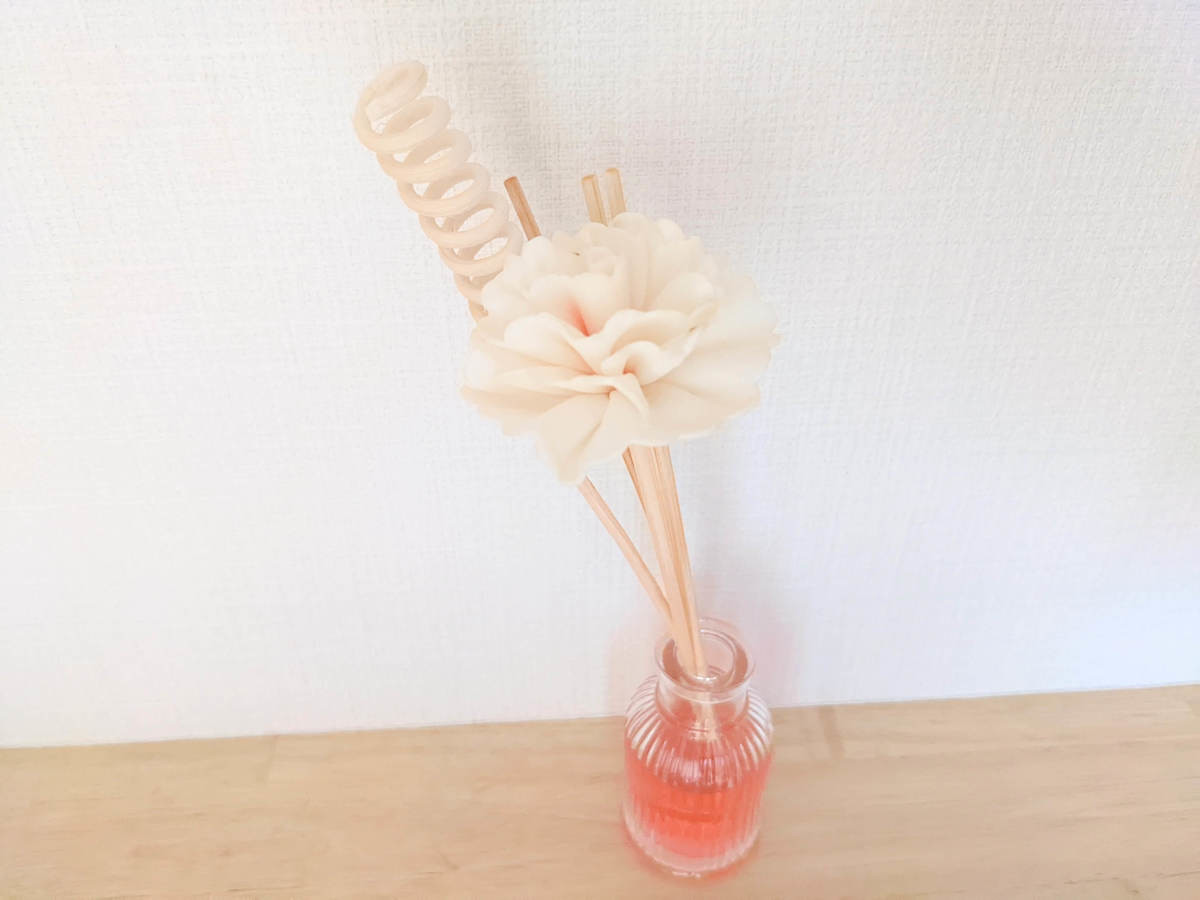 ディフューザーをちょっとおしゃれなインテリアショップで購入すると最低でも2,000円はしますが、こちらのフラワーディフューザーは330円、フラワー石膏ディフューザーは550円と、とってもお買い得です。