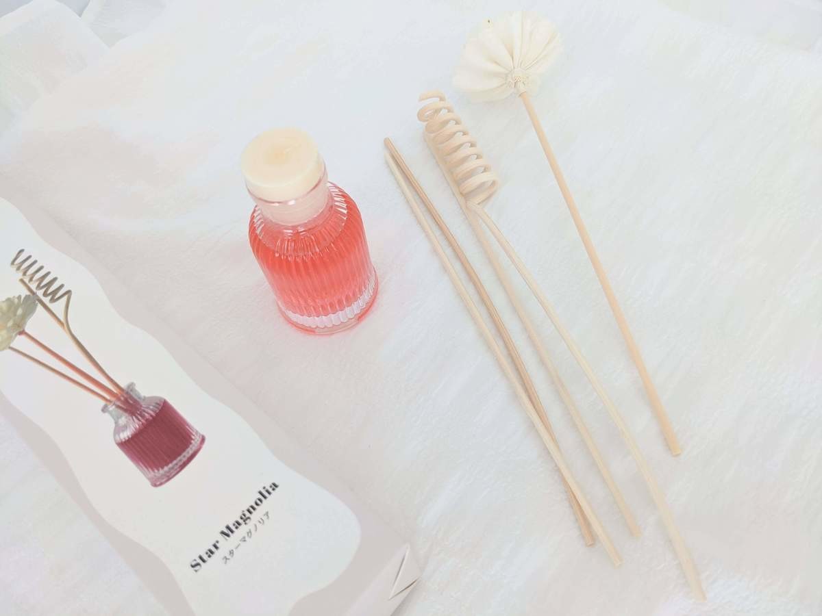 爽やかな甘い香りが漂うスターマグノリア。 ディフューザー液がピンクっぽいので、春インテリアにもおすすめです。
