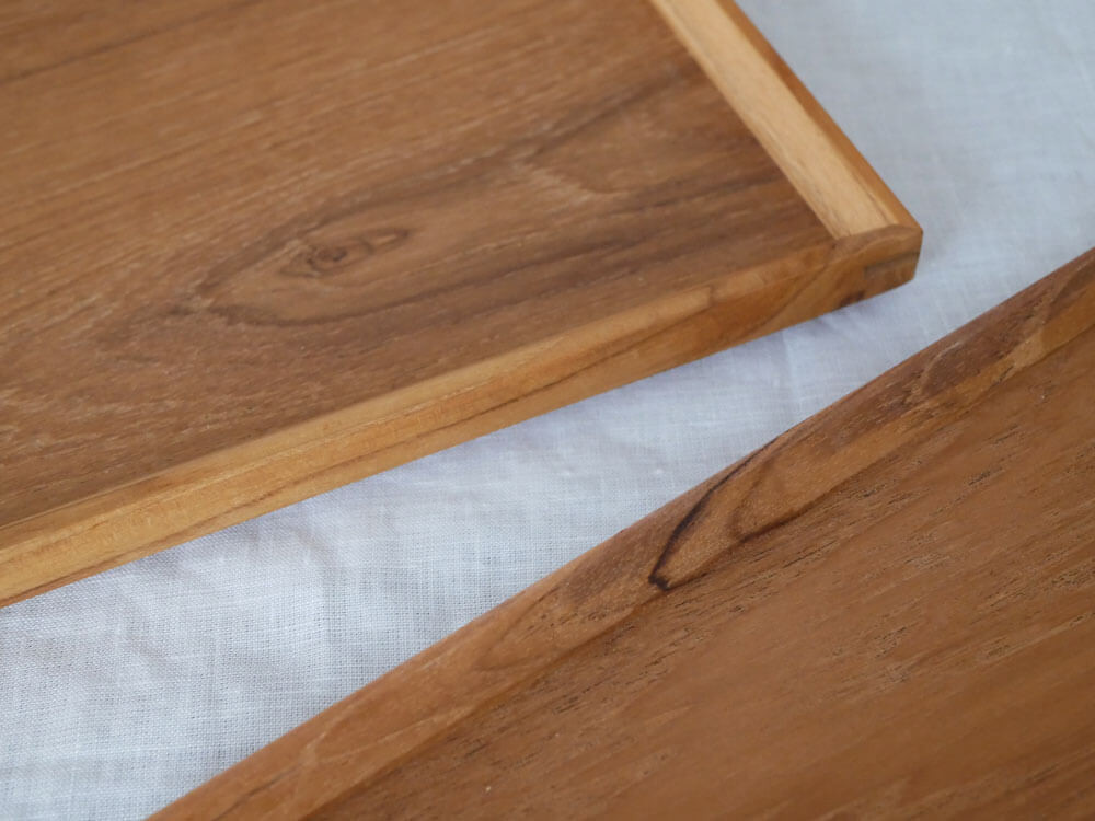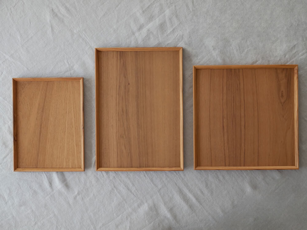 贅沢にチーク材を使用した、温もりある木目の「チークスタックトレイ」。