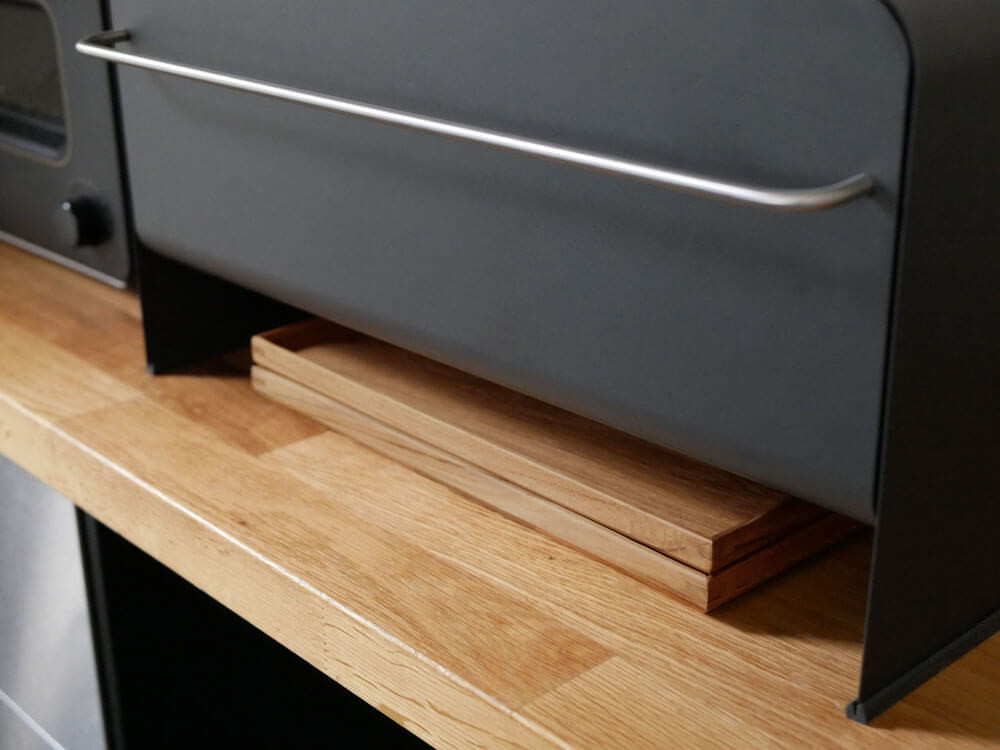 トレイの外側は真っ直ぐ立ち上がり、内側はなだらかな斜めの傾斜があります。テーブルから持ち上げるときに指をかけやすく、持ちやすいつくりになっているのも特徴。