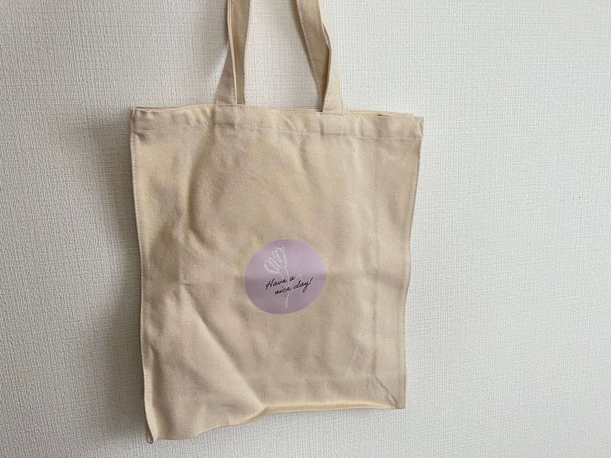 マチ付きトートBAGには転写プリントで加工します。デザインのサイズは縦10cm×横10cmが330円(税込)、縦20cm×横20cmで550円(税込)と、本体価格を含めても最大で880円(税込)とプチプラなんです。