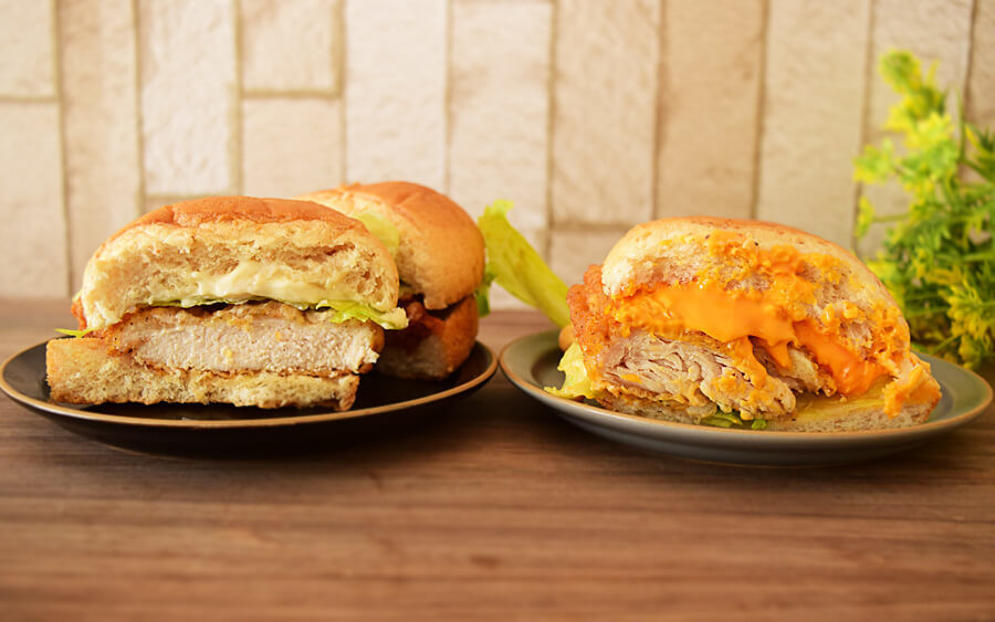 ▲左:チキンフィレサンド 右:チーズにおぼれるフィレサンド