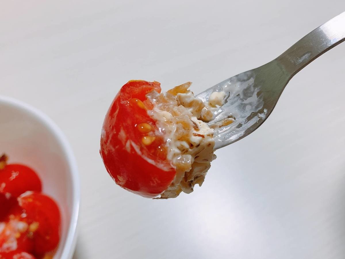 今回は、トマトも入れてみたので、まるで和風カプレーゼのようでパクパクとあっという間に完食!絶対お酒にも合いますよ。