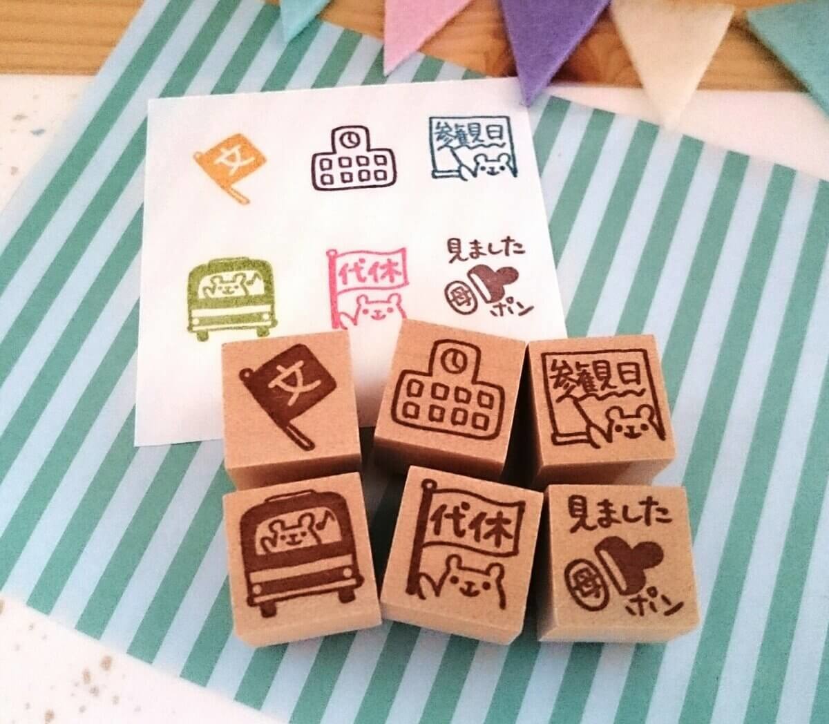 はんこの種類は全部で15種類あり「見ました」は先生とやり取りする、連絡ノートのサインに使えます。