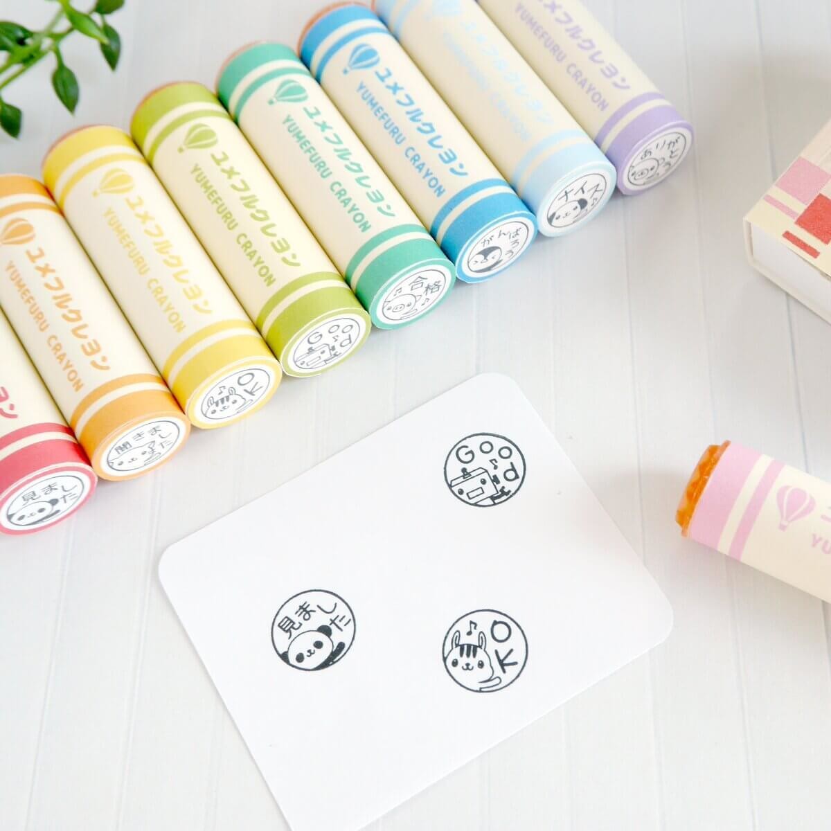 最後にご紹介するのは、カラフルなクレヨン風はんこです。見た目はクレヨンですが、実ははんこ!デスク上に飾っておきいくらい、かわいいデザイン。もちろん実用性も抜群です!