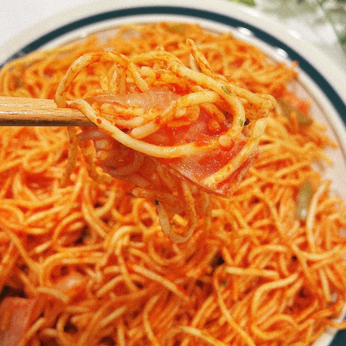 パスタにしっかりケチャップが絡まって、玉ねぎやピーマンのシャキシャキした食感や風味も感じられます。