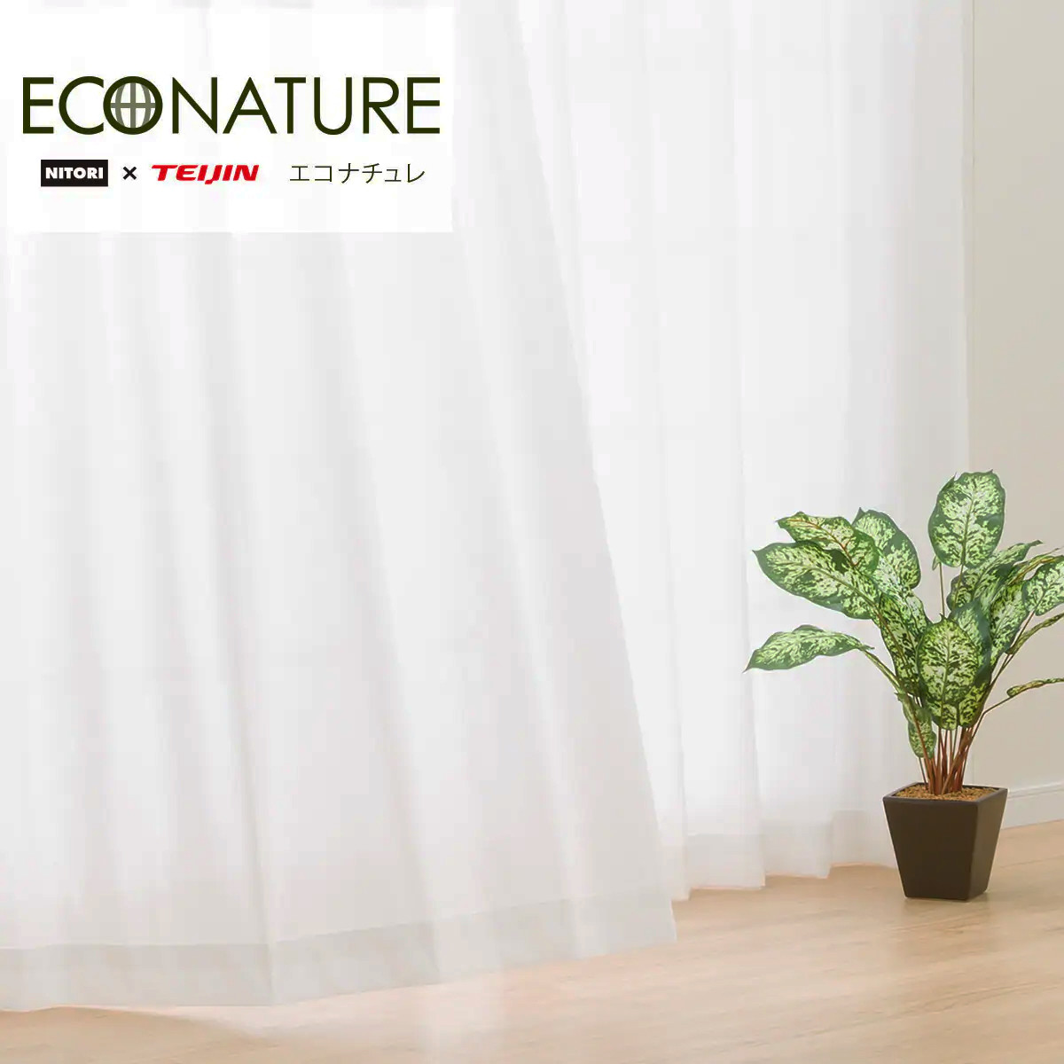 ニトリと帝人フロンティアとの共同開発である「エコナチュレブロック」は、大人気レースカーテン「エコナチュレ」に、抗ウィルス機能を搭載した新しいレースカーテンです。