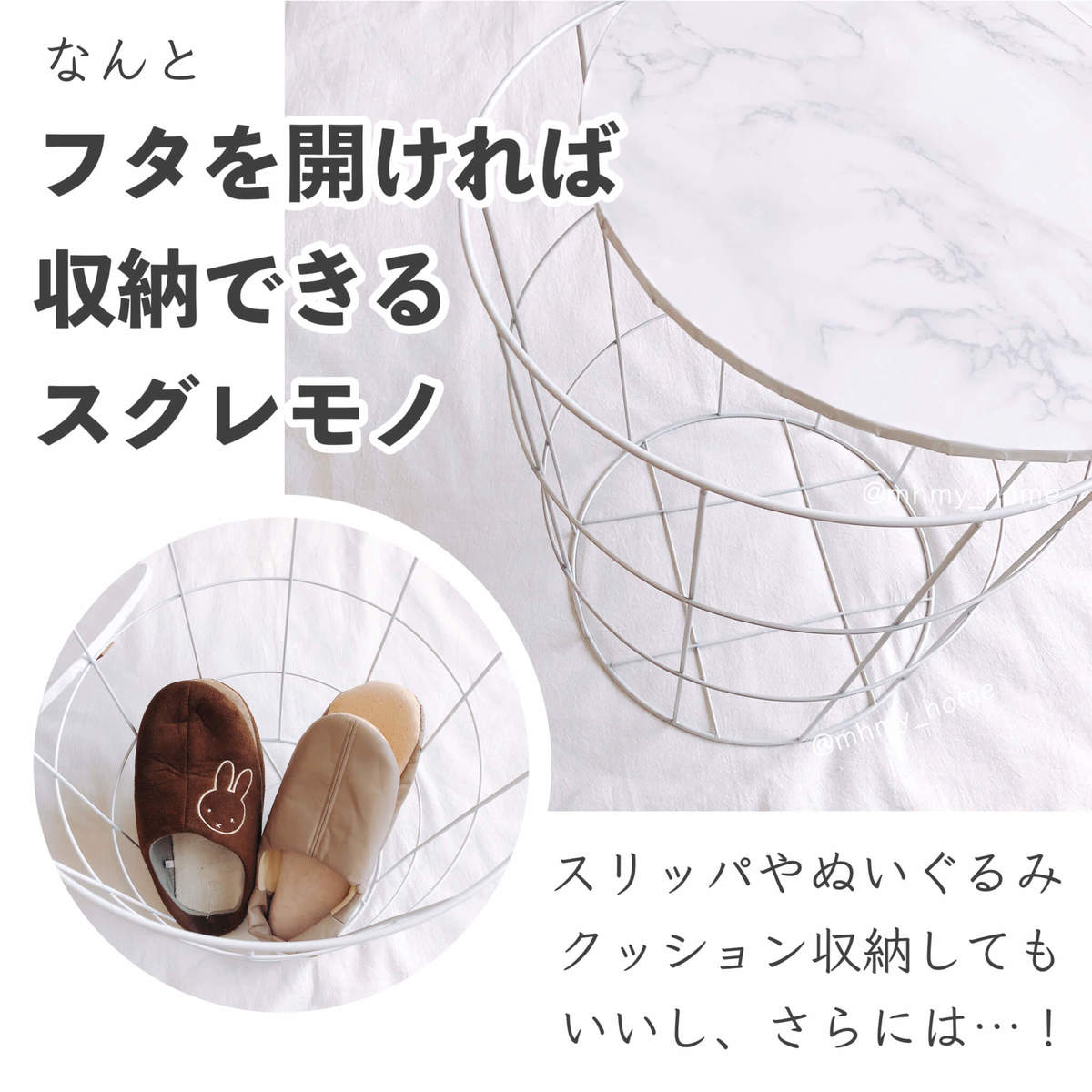 ダイソーで登場して以来、いまだに人気で出会うことの少ない「サイドテーブル」。ダイソーのものはブラックのワイヤーでしたが、今回ついにホワイトを発見!待ってました~!