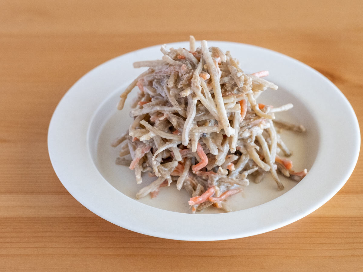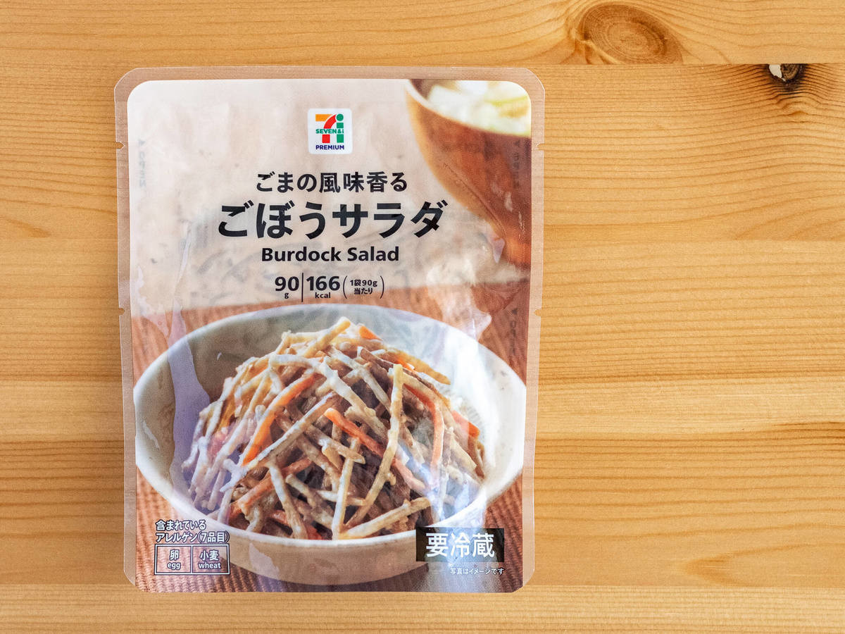 最初にご紹介するのは、こちらの「ごまの風味香る ごぼうサラダ」。1袋に90g入って138円(税込)です。