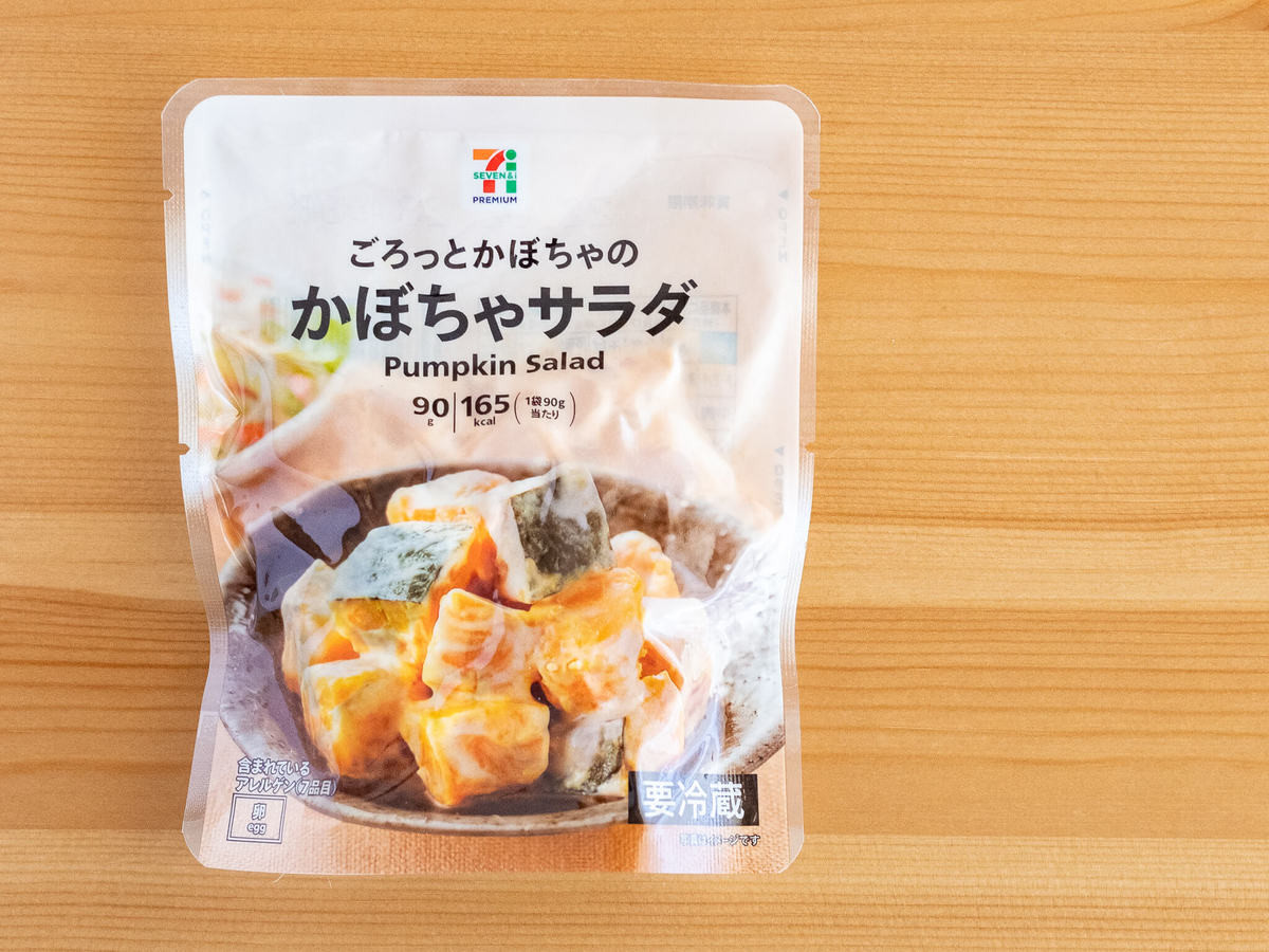 「ごろっとかぼちゃのかぼちゃサラダ」、1袋に90g入りで138円(税込)です。カロリーは1袋165kcalとなっています。