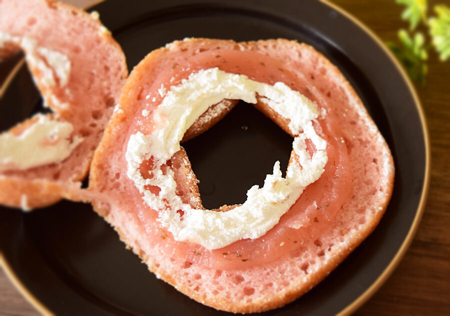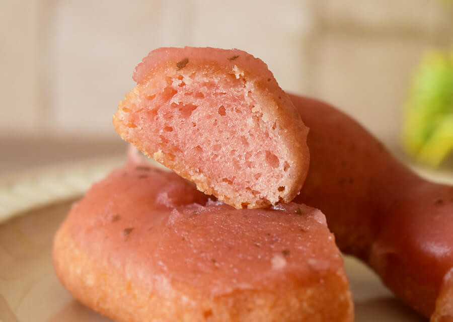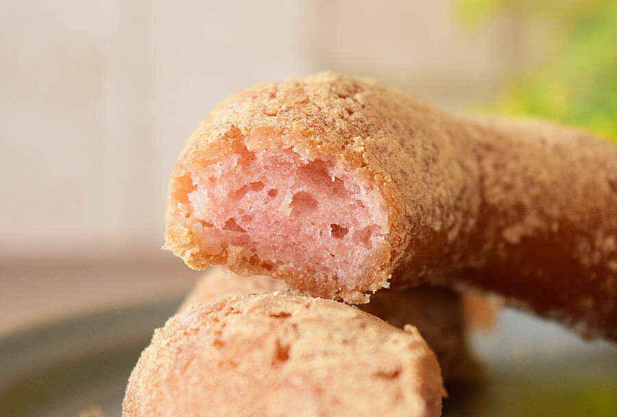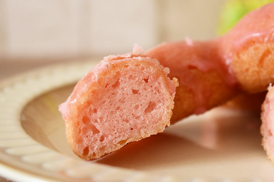 ドーナツ生地の内部までほんのりピンク色。全体的にもっちもちで、桜葉の香りが鼻を通り抜けていきます。まるで、桜葉にくるまれた桜もちを食べているかのような感覚に。春らしいですね。