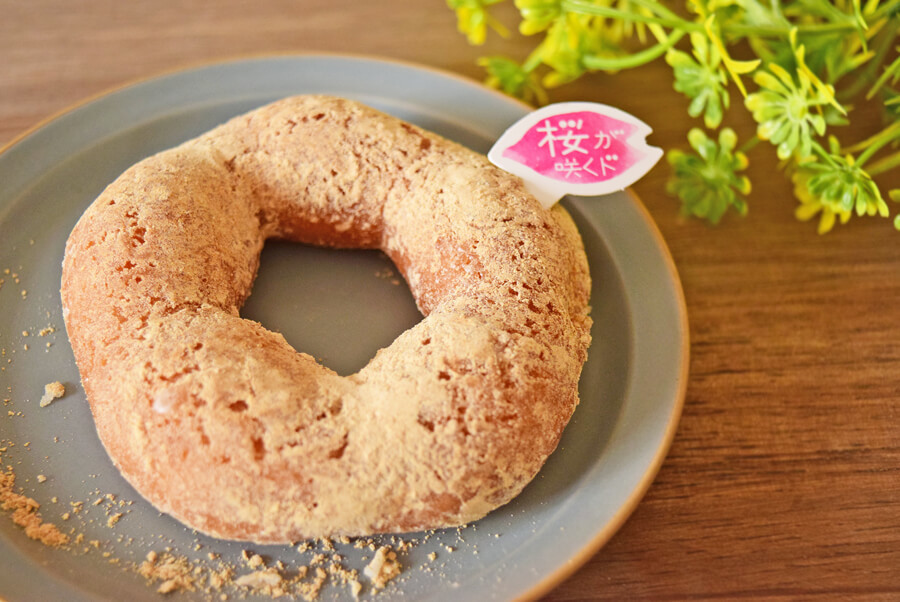 きなこの味わいがメインで、桜風味がちょこちょこと顔を出しているドーナツ。「桜系のスイーツは嫌いじゃないけど、味が濃すぎる」なんて人でも食べたくなる絶妙な味に仕上がっていますね。