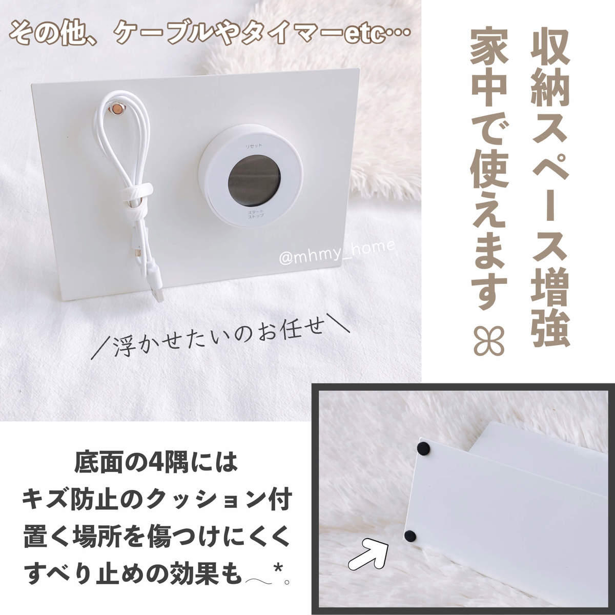 底面の4隅にはキズ防止のクッション付きで、置いた場所を傷つけにくくすべり止めの効果もあります。