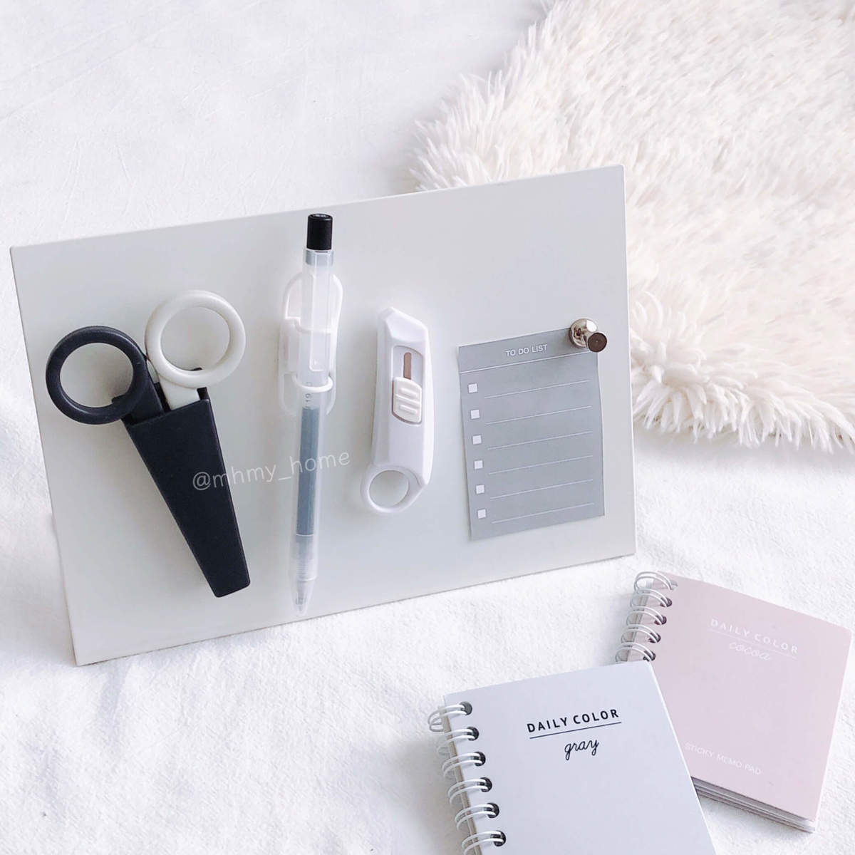 バラバラになりがちな文具を浮かせて収納。これならすぐ取れますし、簡単にまとめることができます。作業スペースやデスク周りで大活躍!