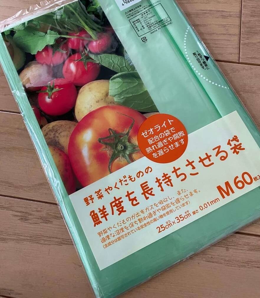 こちらは、実はずっと愛用しているアイテムで、野菜を冷蔵庫に保存する際に使用しています。