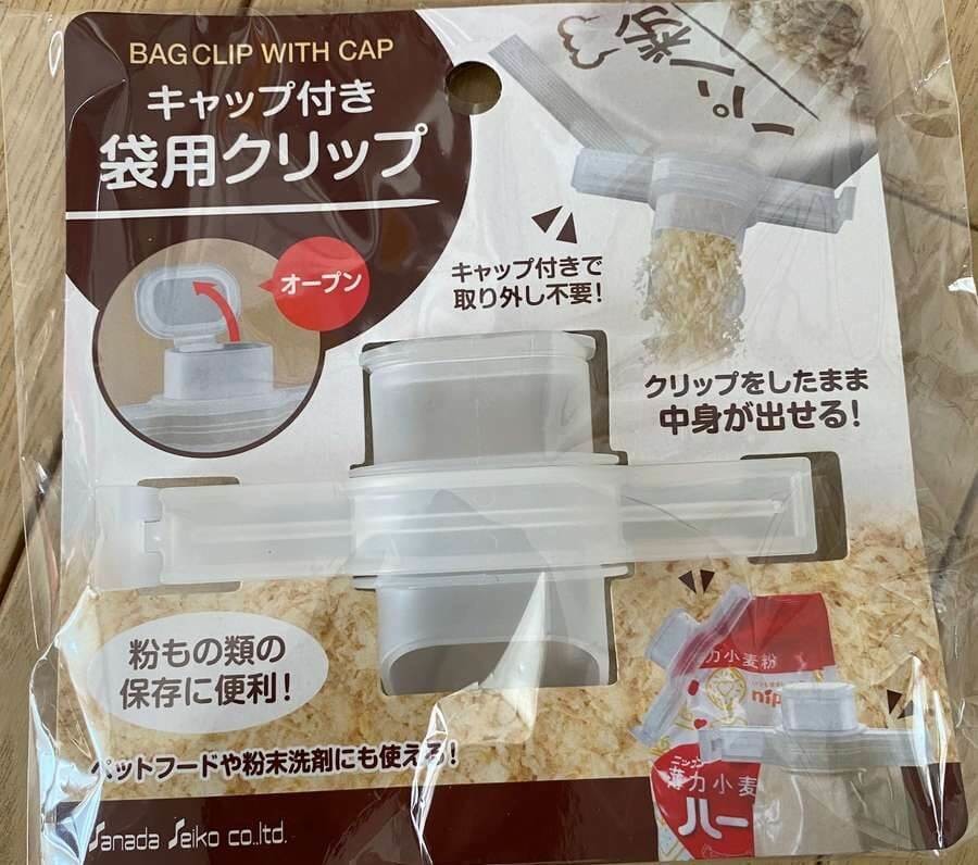 パン粉の袋の端っこを切り、この筒を差し込んでクリップをカチッと留めれば完成です。