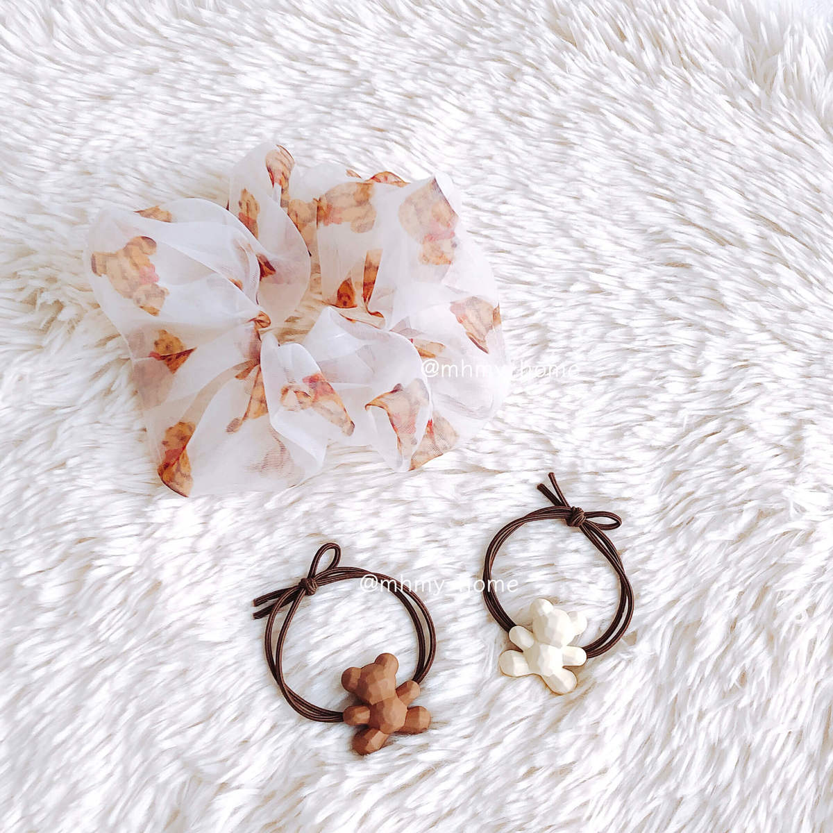 ヘアゴムはくまモチーフでこのシンプルさが可愛い!くま自体がホワイトとブラウンの2色ありましたよ。