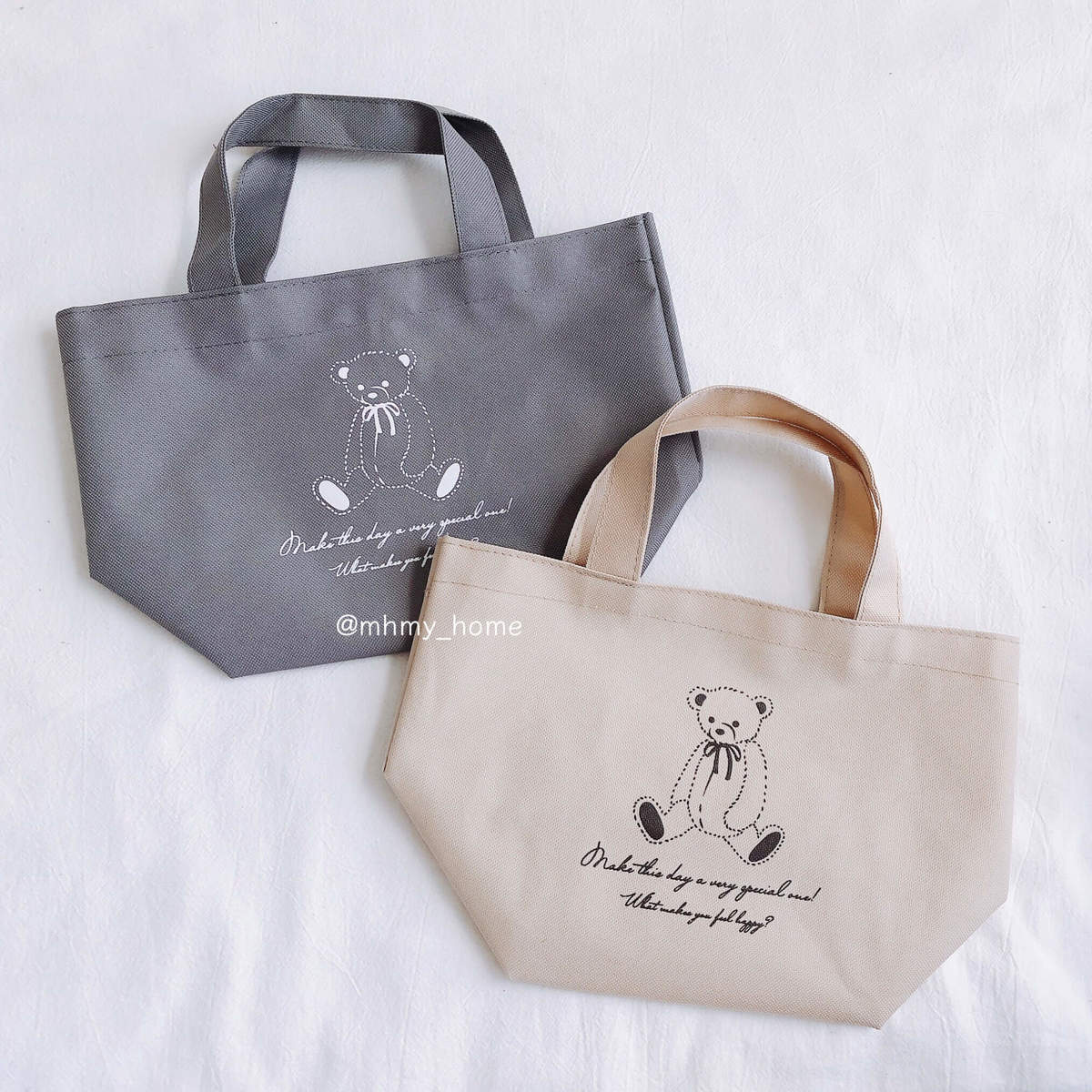 キャンドゥでは、新生活にもピッタリなランチグッズのくまシリーズを発見しました!まず購入したのは「トートバッグ」です。カラーはグレーとベージュの2色を見つけました。