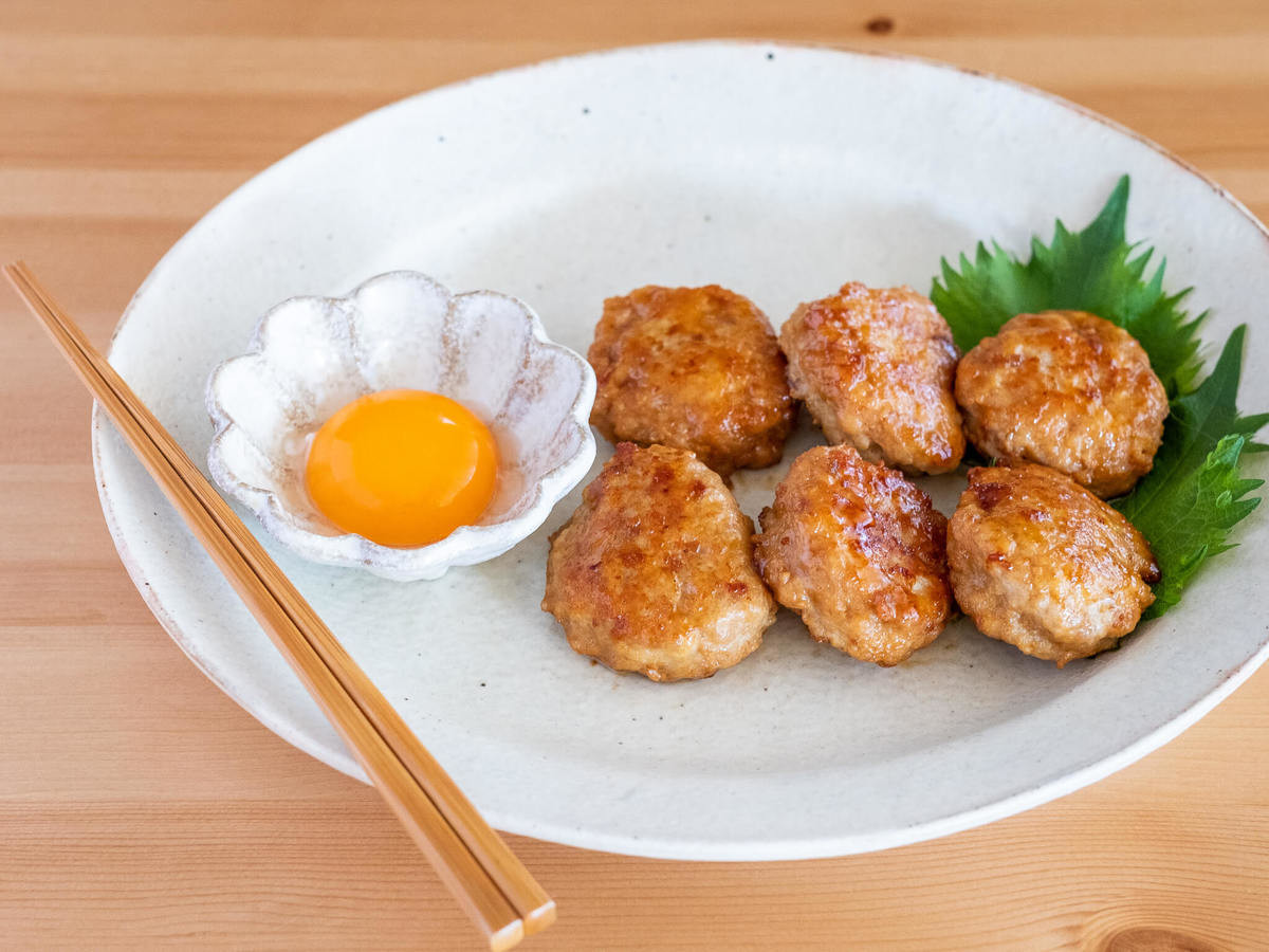 鶏ひき肉とみじん切りにしたネギなどでつくねを作り、「まろやかなすき焼きのたれ」で味付けをしてみました。