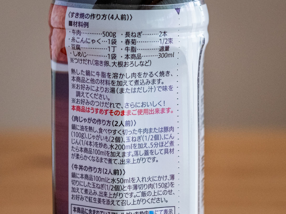 パッケージ側面には、すき焼きのレシピやその他の料理のレシピも記載されています。すき焼き以外の使い道が思いつかない!というときにかなり役立ちます。