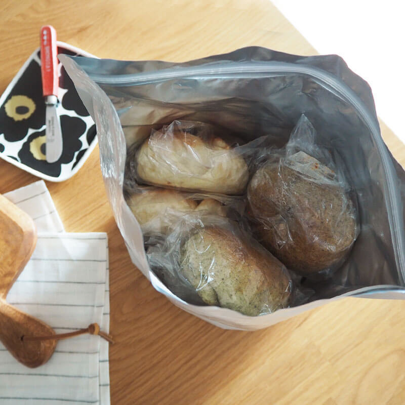 冷凍しても美味しくいただけるいいアイテムはないかと探して、出会ったのが「マーナ パン冷凍保存袋」でした。