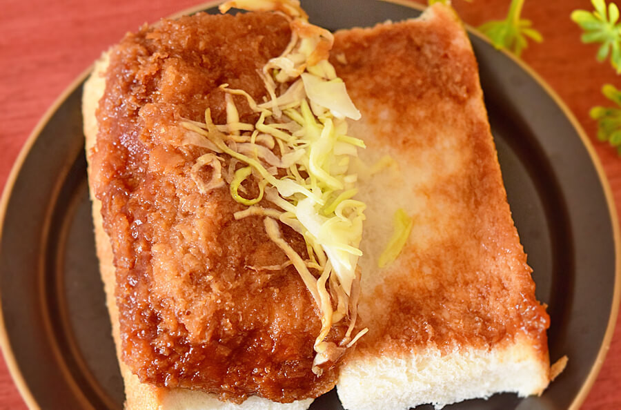 家族とシェアしようと包丁でカットすると「ザクッ」という音がしました。ハムカツはソースべっとりなのに、衣がサクサクしているのかと口に入れたら、衣がサックサク。リズムよく食べられます。