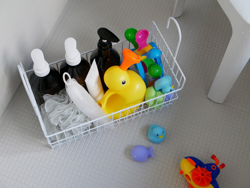 おもちゃだけでなく、シャンプーやボディソープなどのボトル類の収納もOK。