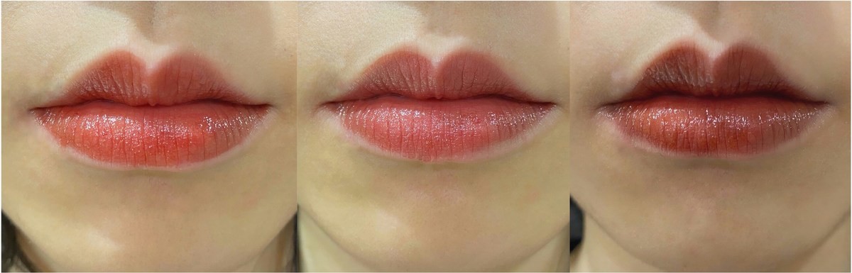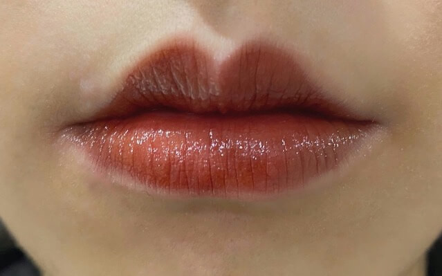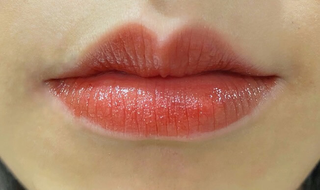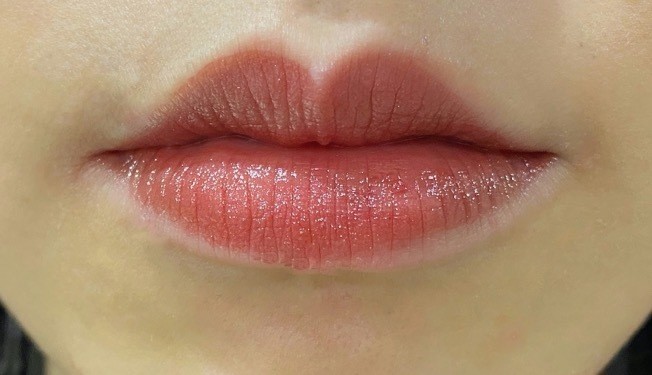 高発色で、ツヤっとした濡れたような唇に。それなのに、唇の表面はベタつかず内側はしっとりうるおう仕上がりになりました。