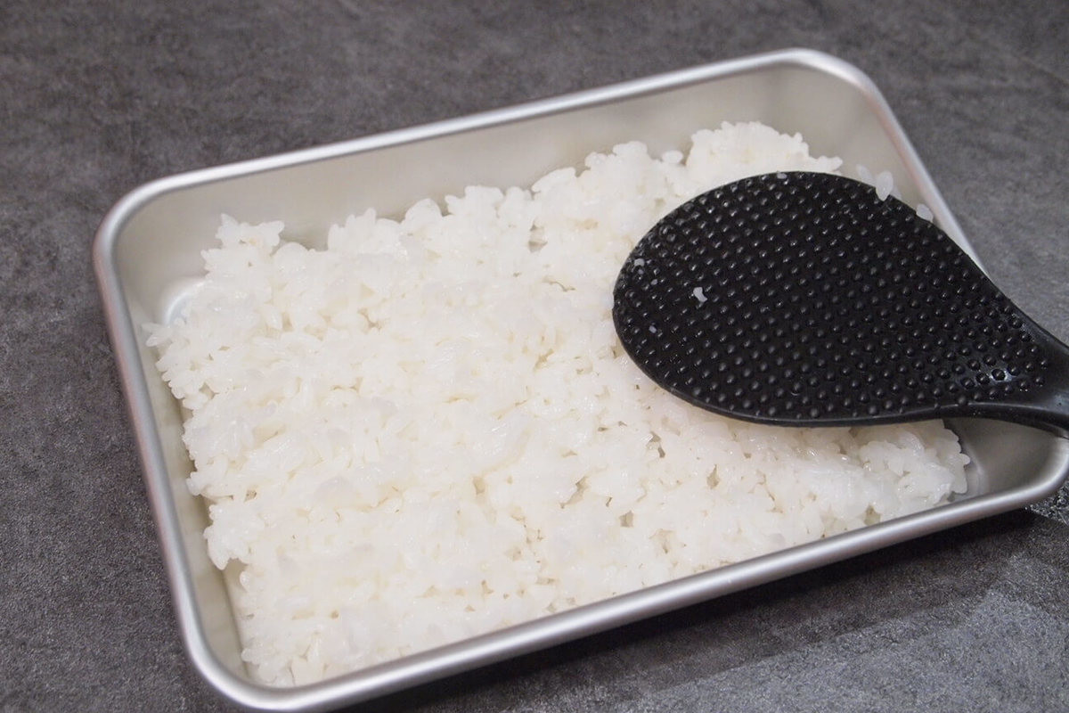 おにぎりをふんわりさせたいなら、炊き立てご飯は広げて冷ます