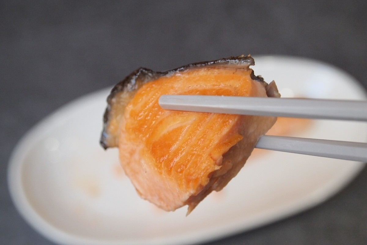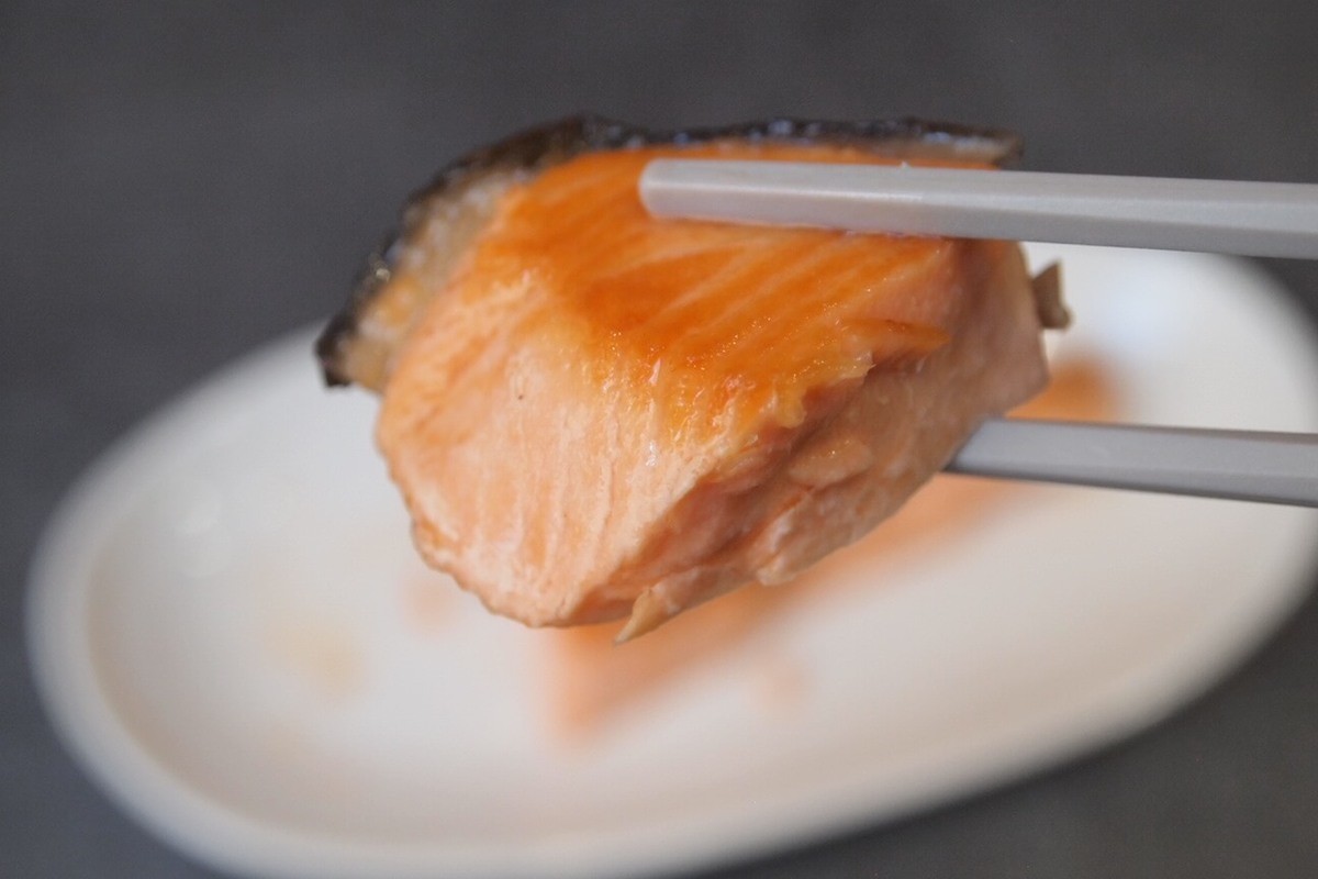 短時間で、あっという間に焼きあがったにもかかわらず、塩鮭の表面や皮の部分はパリッと仕上がり、中の身はふっくらやわらかに仕上がっていました。