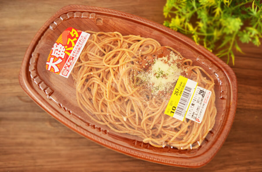 パスタについては「スーパーのお弁当の下の方に入っているパスタ」のような食感。そのまま食べるとやや味が薄めでしたが、上で紹介したミートソースの塊と絡めて食べるとちょうど良かった!