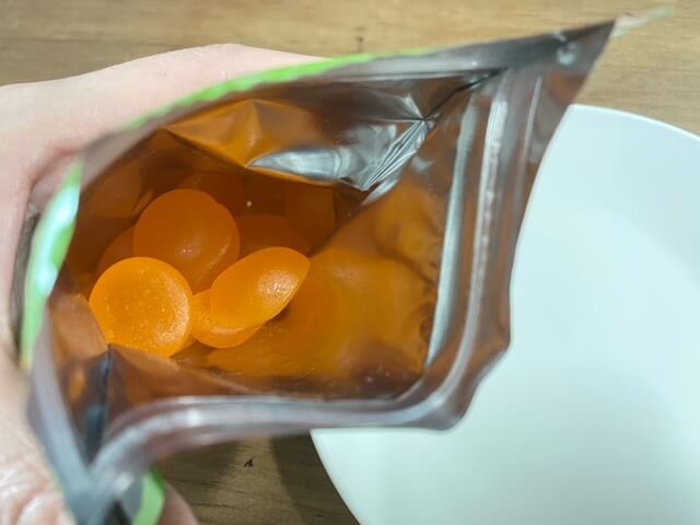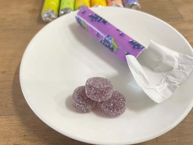 なので、カラフルフルーツグミを最初見たときはラムネやタブレット菓子だと思い、グミだと気が付きませんでした。