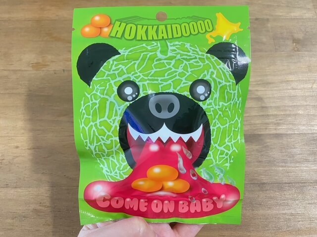 北海道の人気ご当地キャラ「メロン熊」がパッケージ、夕張メロン仕立てのメロンクマグミです。