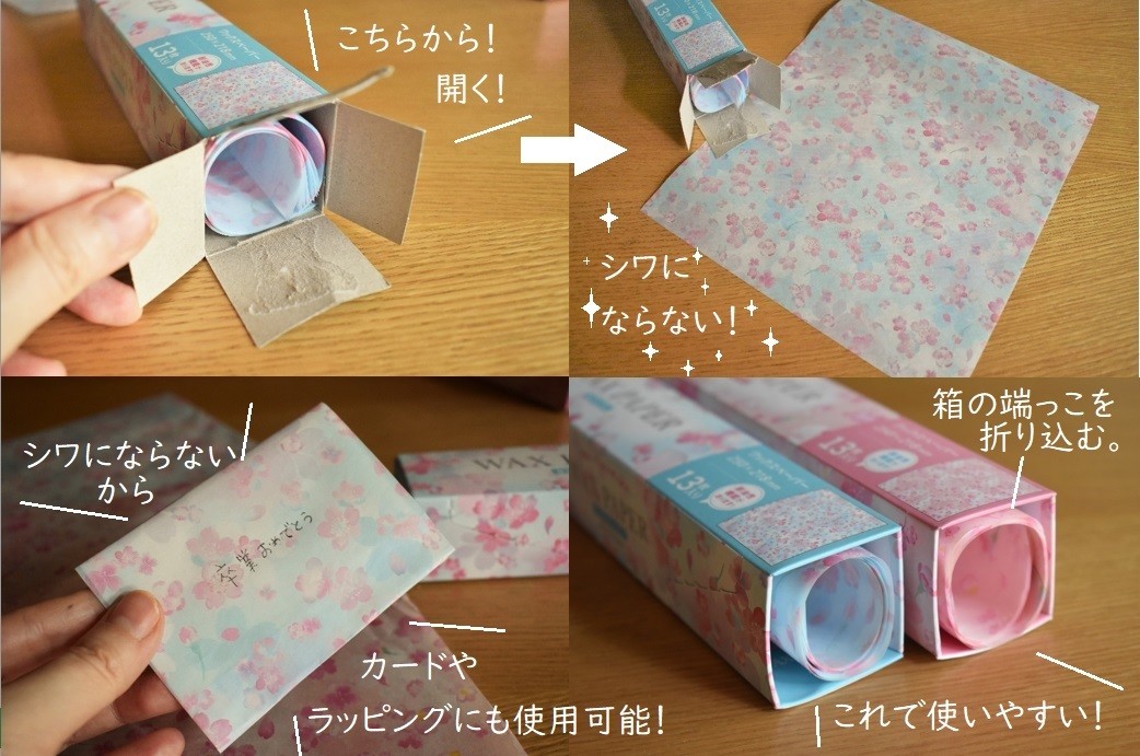 ワックスペーパーは箱の横から取り出すと美しいまま!