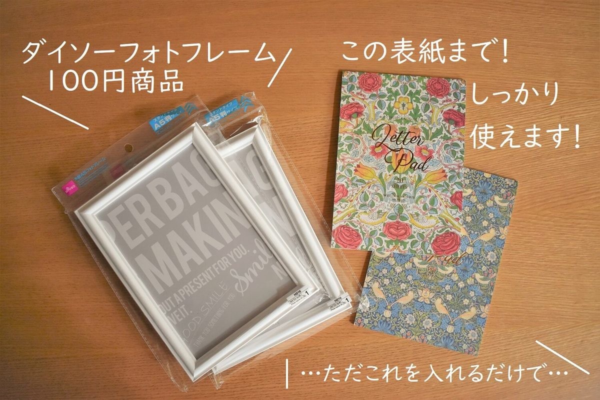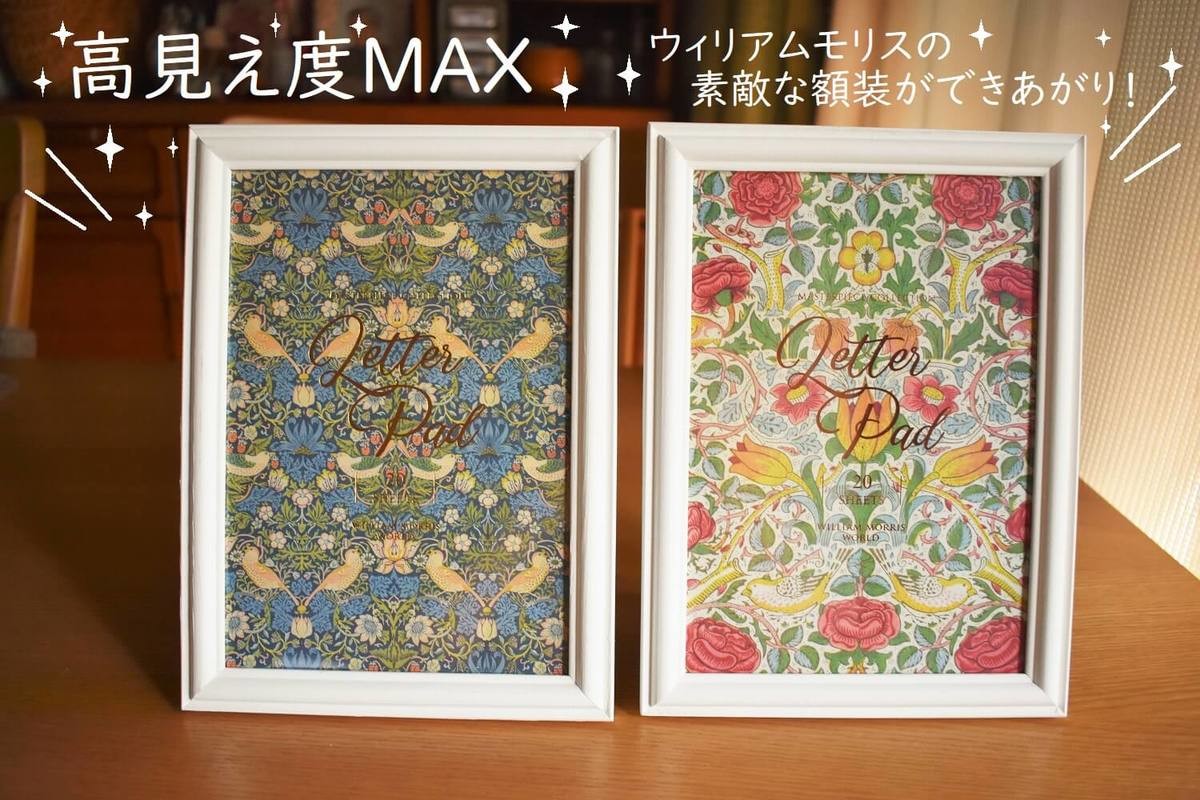 そのフォトフレームに、ただウィリアム・モリスの便箋表紙を入れるだけで…