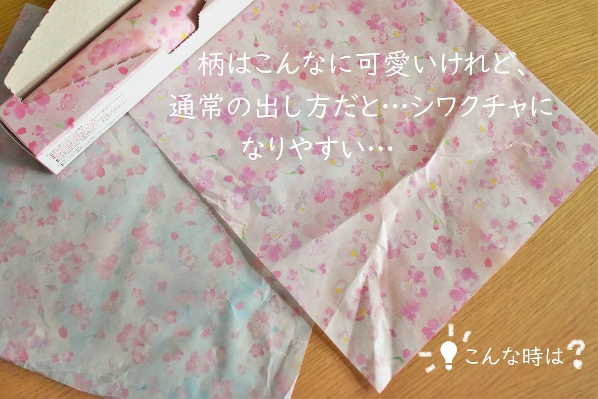 これでクシャっとして使用する以外にも、プレゼントのお菓子をラッピングにしたり、カードに使用したりと自由自在!ぜひ、この出し方で春の乙女柄を使ってくださいね。