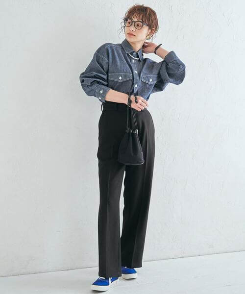 ワイドパンツやデニムでトーンダウンしたり、旬のカラースラックスで色遊びをするのもおすすめです。
