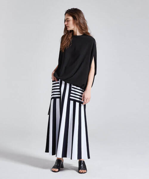 クールで華やか!強さのあるモノトーンスカートコーデ