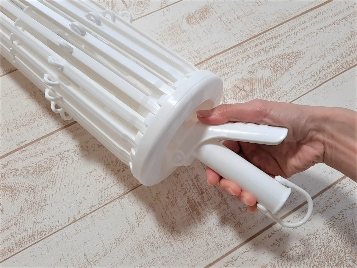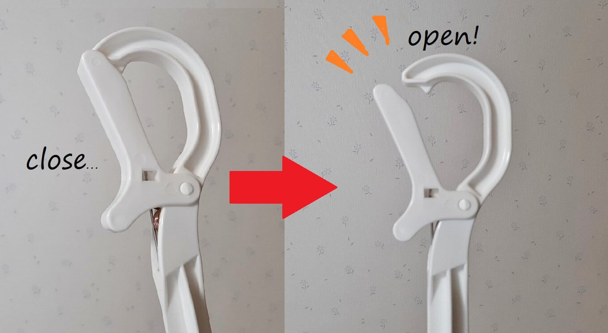 下側を持って開閉できるので、高い場所に干すときに便利なんです。
