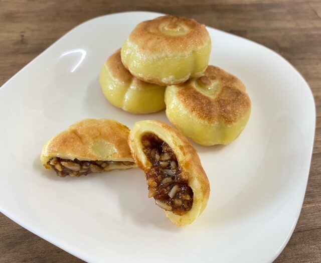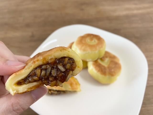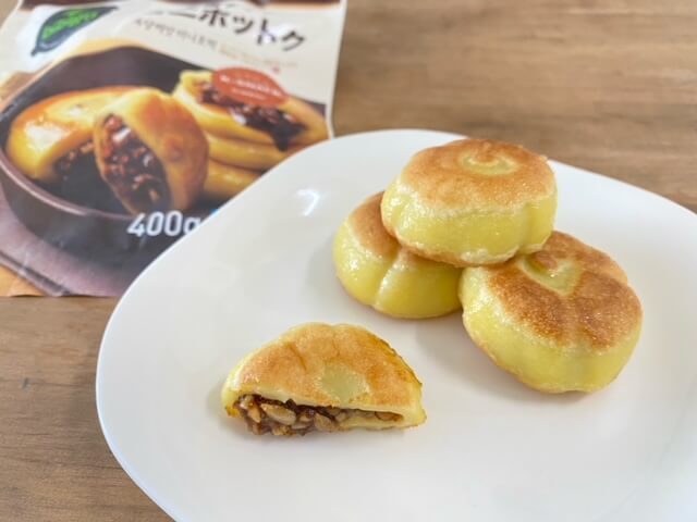調理方法には5分ほど焼くと記載がありますが、bibigoのホットクは厚みが2cmほどあり5分で中まで火が通っている気がしなかったので、私は最終的に10分くらい焼きました。